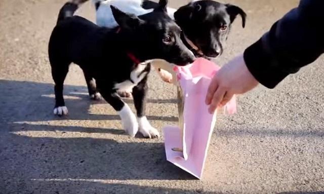 Watch the video below and see the dogs so excited to found out what’s in their gift bags!