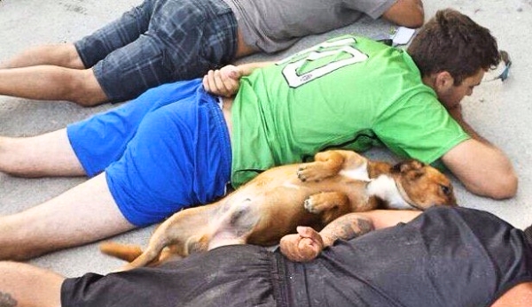When the police approached the home, the dog was barking at them. But when he saw his owners laying down on the ground as the police commanded, he followed them, and laid down on the ground; like he’s surrendering to the cops too!