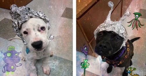 Some of the shelter’s adoptable cuties were happy to pose in aluminum hats and antennae (to keep the aliens from reading their thoughts).