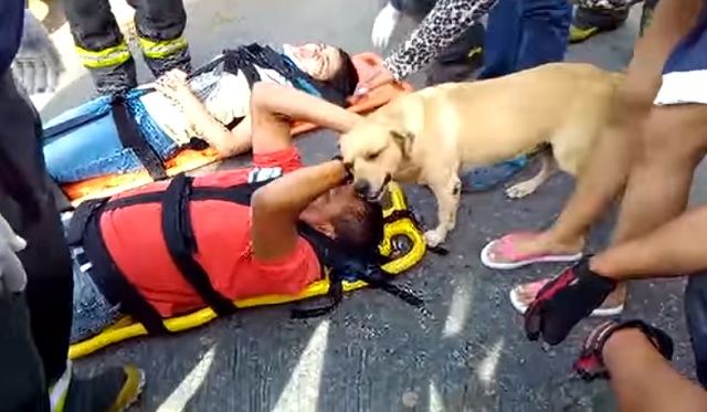 The dog in the video below showed his human just how much he cares for him. In Colombia, victims of a bus accident were being treated on the scene. According to ta post by The Dodo, a mechanical failure caused the bus to veer off the road and collide with a structure. One of the victims was a dog owner, and when his wife was informed about the accident, she wasn’t the only one who was concerned and worried. It wasn’t just his wife who rushed to the scene to see how he was doing–his dog also tagged along!
