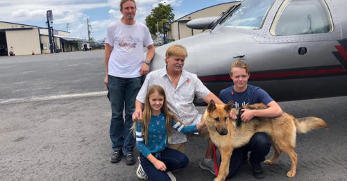Before she could go home, Cedar needed to recover from her injuries. She spent three weeks healing. Then, Wings of Rescue helped organize Cedar’s return flight to Florida. The Peterson kids were thrilled to be reunited with their pup. They petted Cedar’s chest and neck on a Fort Lauderdale airport tarmac.